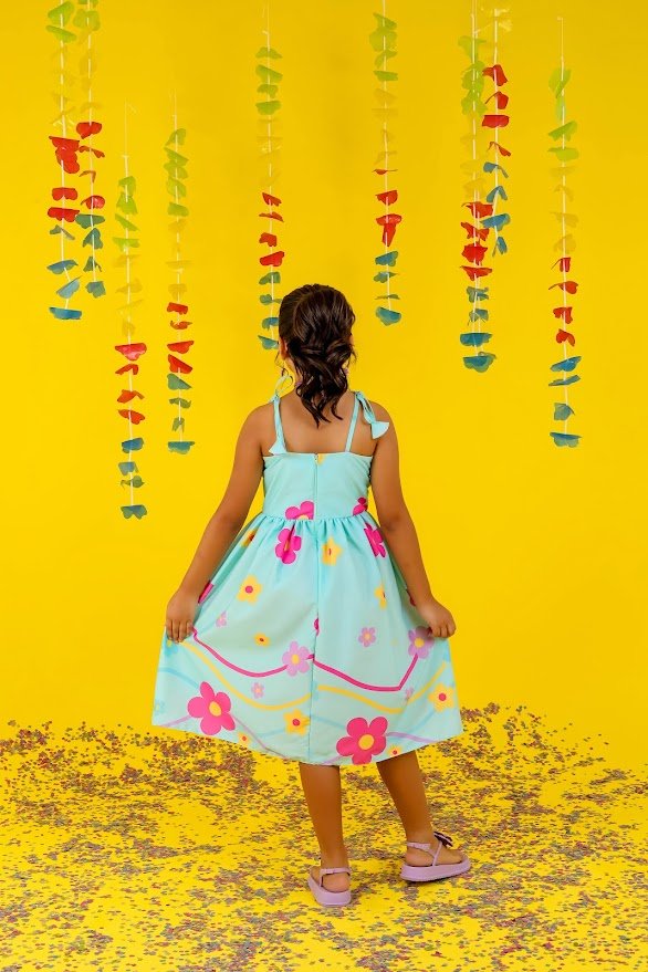 vestido verde água com flores